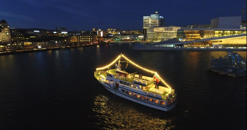 Kl. 0200: Båten returnerer til Tjuvholmen. Det blir nattmat på overfarten.